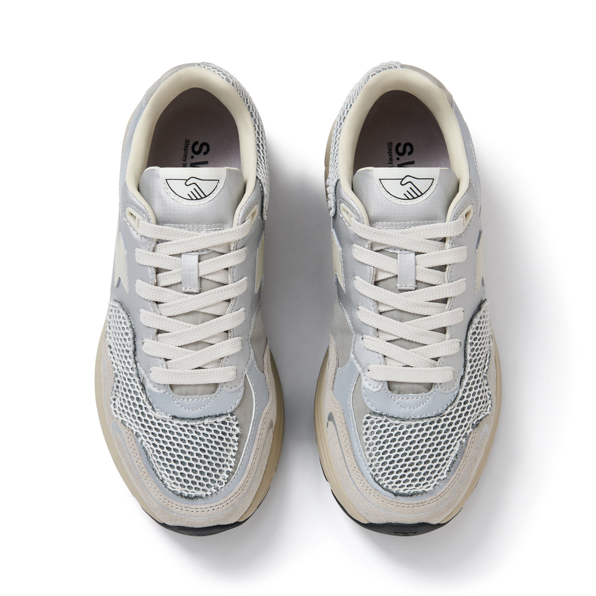AMIEL S-STRIKE features an updated asymmetric mesh overlay panel design. Mesh tongue panels create a layered collar aesthetic, while raw-edge detailing is overlayed on the toe vamps and medial collar areas for a contemporary finish. Silver and grey technical nylon uppers are paired with padded sneaker mesh materials and tonal suedes. 3M S-Strike panel features our gold-foil brand messages. Constructed on our 3-part lightweight technical running sole consisting of a cushioned light EVA midsole, durable rubber bottom sole tread, and supportive TPU S-Strike heel-clip for stability.