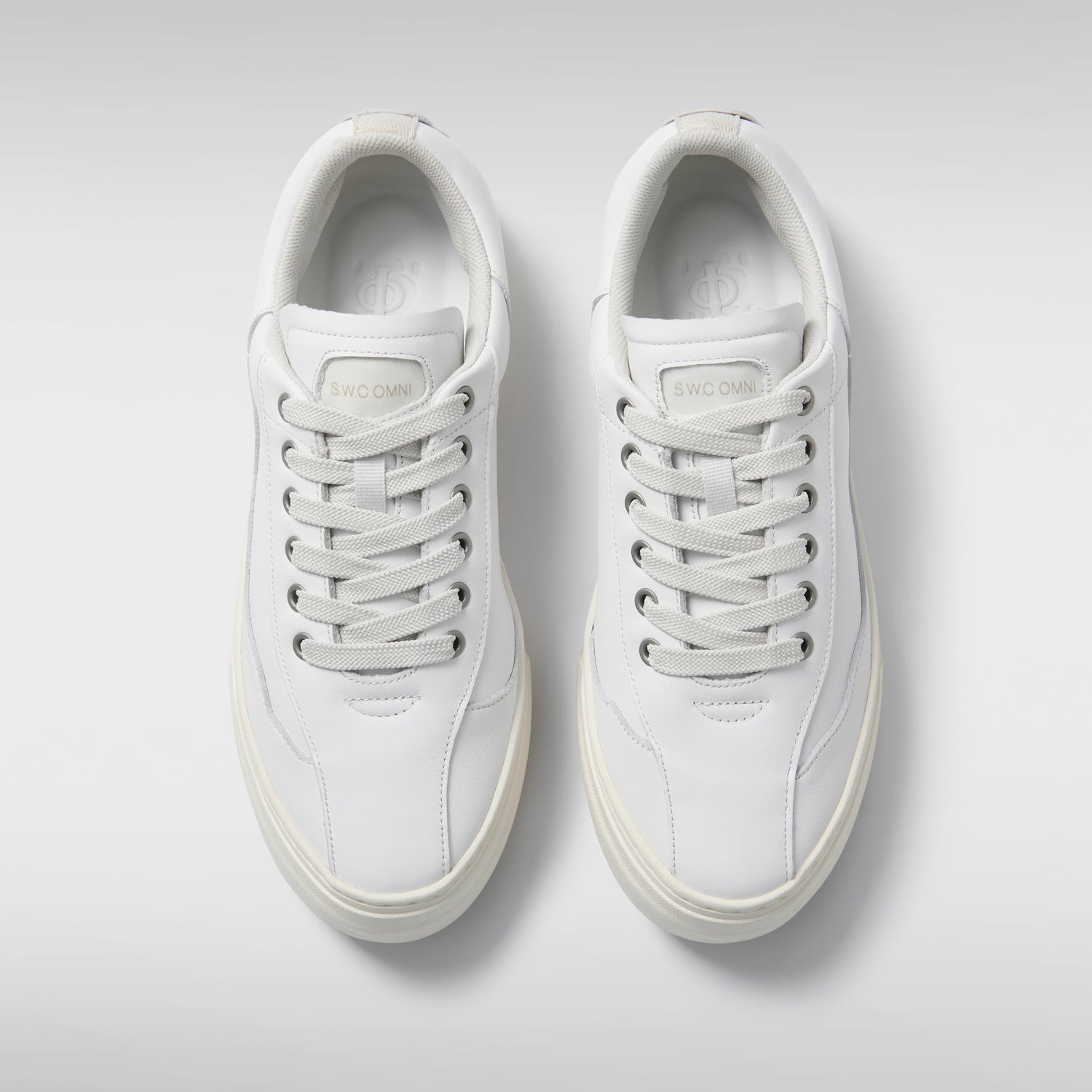 Low lace-up featuring asymmetric 'OMNI' panel detailing with raw edging and tonal stitching.